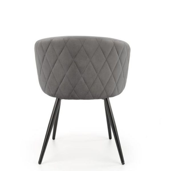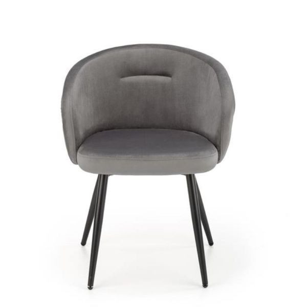 Mérete: 61x54x77 cm (szé x mé x ma) Ülésmagasság: 48 cm Anyaga: - szürke színű, bársonyszövet ülőfelület és támla - fekete színű, porszórt acél lábak A fotel szék modern megjelenésének köszönhetően kiváló választás lehet étkezőkbe és tárgyalókba egyaránt. Kialakítása kényelmes, puha ülőfelülete és stabil támlája megfelelő támaszt nyújt.