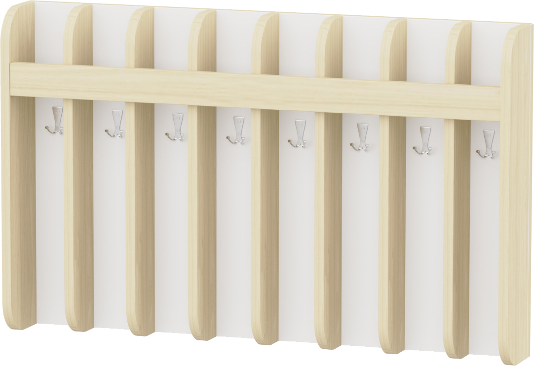 Az előírásoknak megfelelően fakkonkénti elválasztással, így biztosítva, hogy a törölközők nem érnek egymáshoz. A fakkok mindegyike 1-1 db kétágú akasztót tartalmaz, melyre a törölközőt és a nyeles kisfésűt is fel lehet akasztani. A felső fakkokba helyezhetőek a fogmosópoharak. Az ovisjelek is könnyen felhelyezhetőek az erre a részre kialakított díszlécre.