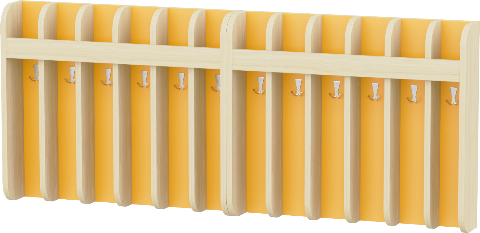 Az előírásoknak megfelelően fakkonkénti elválasztással, így biztosítva, hogy a törölközők nem érnek egymáshoz. A fakkok mindegyike 1-1 db kétágú akasztót tartalmaz, melyre a törölközőt és a nyeles kisfésűt is fel lehet akasztani. A felső fakkokba helyezhetőek a fogmosópoharak. Az ovisjelek is könnyen felhelyezhetőek az erre a részre kialakított díszlécre.
