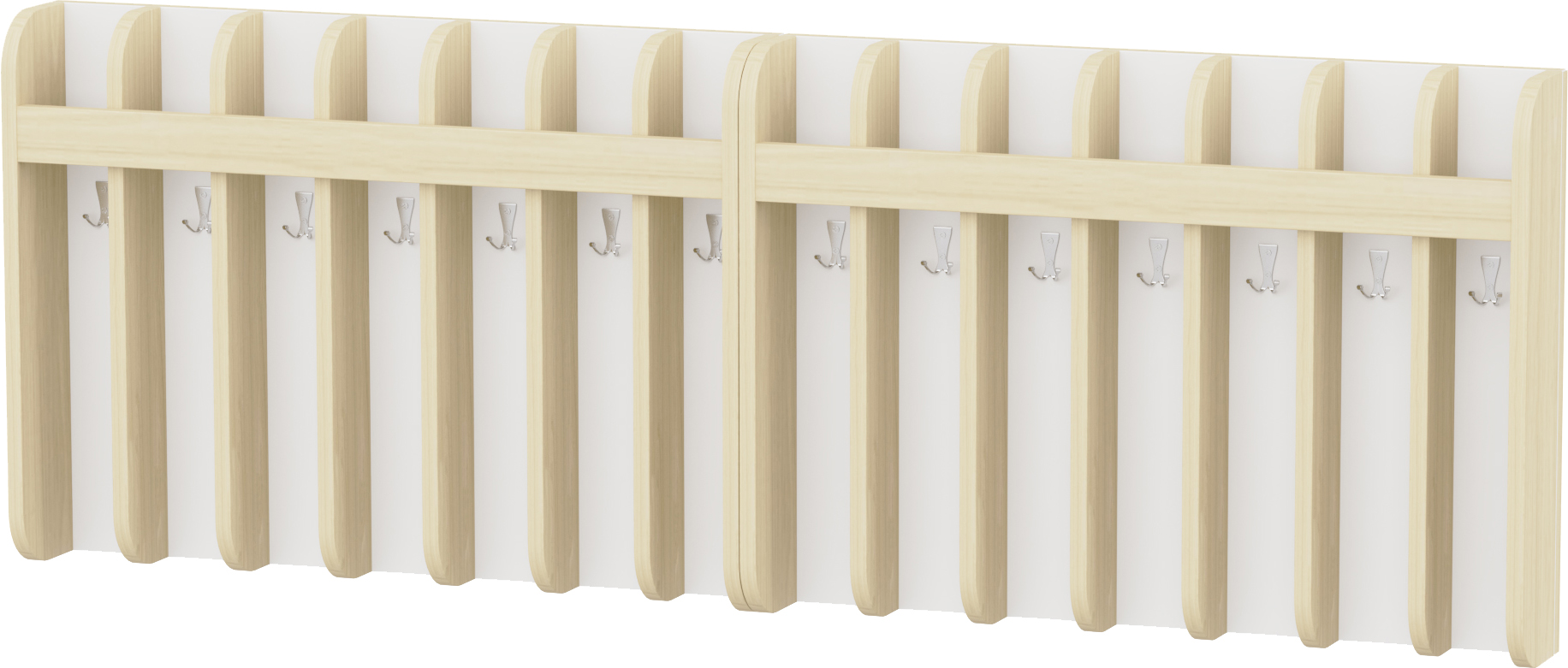 Az előírásoknak megfelelően fakkonkénti elválasztással, így biztosítva, hogy a törölközők nem érnek egymáshoz. A fakkok mindegyike 1-1 db kétágú akasztót tartalmaz, melyre a törölközőt és a nyeles kisfésűt is fel lehet akasztani. A felső fakkokba helyezhetőek a fogmosópoharak. Az ovisjelek is könnyen felhelyezhetőek az erre a részre kialakított díszlécre.