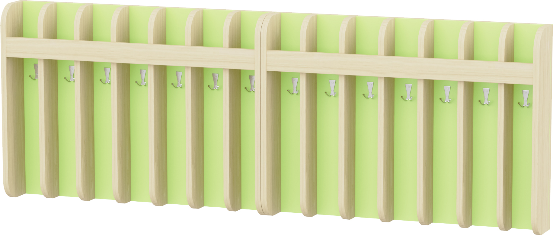 Az előírásoknak megfelelően fakkonkénti elválasztással, így biztosítva, hogy a törölközők nem érnek egymáshoz. A fakkok mindegyike 1-1 db kétágú akasztót tartalmaz, melyre a törölközőt és a nyeles kisfésűt is fel lehet akasztani. A felső fakkokba helyezhetőek a fogmosópoharak. Az ovisjelek is könnyen felhelyezhetőek az erre a részre kialakított díszlécre.