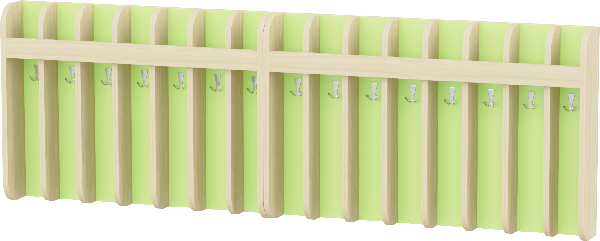 Az előírásoknak megfelelően fakkonkénti elválasztással, így biztosítva, hogy a törölközők nem érnek egymáshoz. A fakkok mindegyike 1-1 db kétágú akasztót tartalmaz, melyre a törölközőt és a nyeles kisfésűt is fel lehet akasztani. A felső fakkokba helyezhetőek a fogmosópoharak. Az ovisjelek is könnyen felhelyezhetőek az erre a részre kialakított díszlécre.