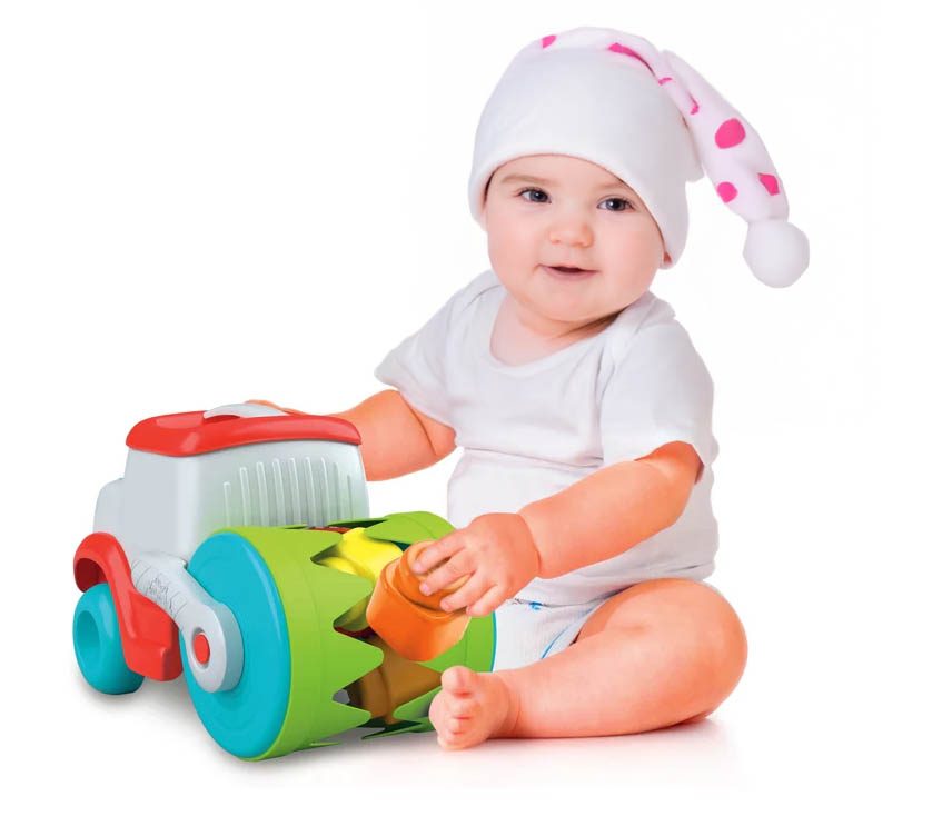 A babák a puha kockákat az úthenger segítségével összegyűjthetik, gördíthetik vagy megépíthetik velük első tornyaikat.