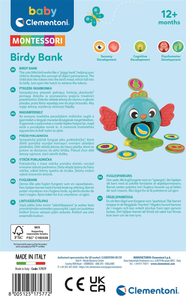Ez a játékos Montessori kismadár persely szett a Clementoni márkától, amely kiválóan illik óvodákba és bölcsődékbe is.