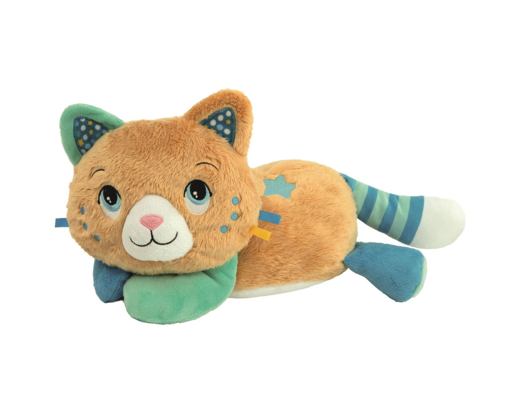 Méret: kb. 25x20cm Tartalom: 1 db doromboló plüss cica Funkció: hangot adó és világító plüss Ajánlott korosztály: 0 hónapos kortól Anyaga: puha, textil és műanyag betétekkel, elemmel működik