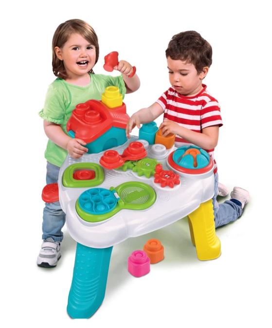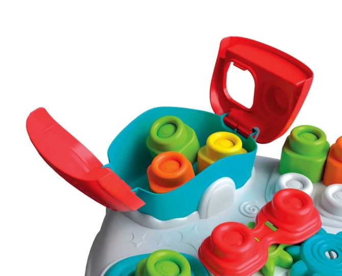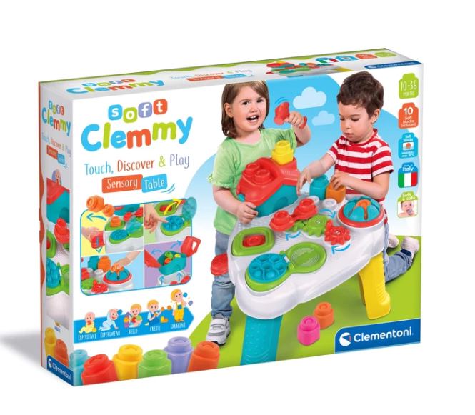 A készlet 1 db érzékelő asztalt és 10 db puha Clemmy építőkockát tartalmaz, amely játékos formában fejleszti a 10–36 hónapos gyermekek finommotorikáját, szem-kéz koordinációját és érzékszervi készségeit. A különféle mechanikus elemek (forgó fogaskerekek, lenyomható gombok, kalapács, felnyitható tető) ösztönzik a felfedezőkedvet és a problémamegoldó gondolkodást.