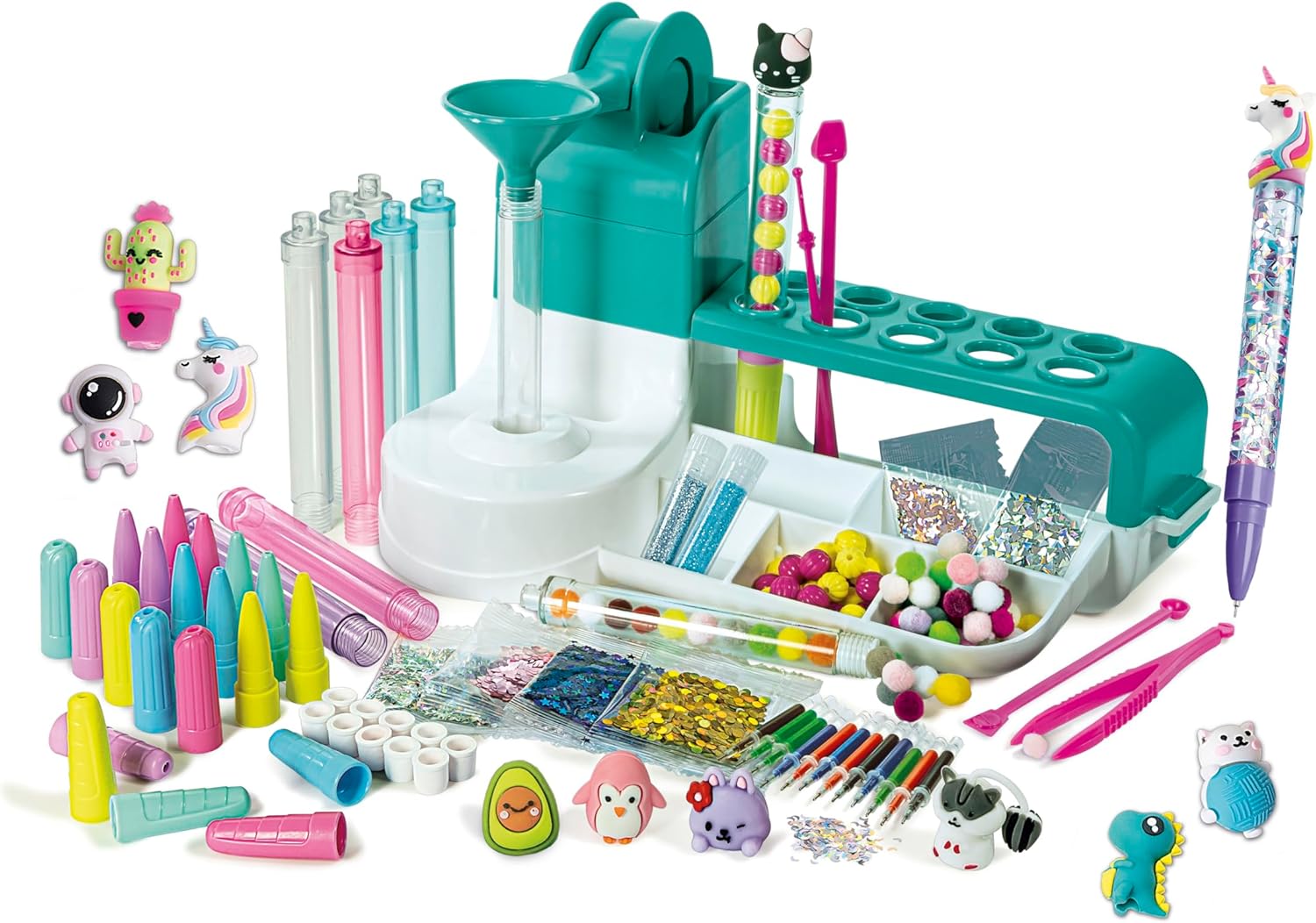 A Tollkészítő laboratórium kreatív készlet egy izgalmas, saját készítésű alkotási élményt nyújt minden gyermek számára, ahol több mint 50 csillogó és színes kiegészítő segítségével készíthetnek egyedi tollakat.