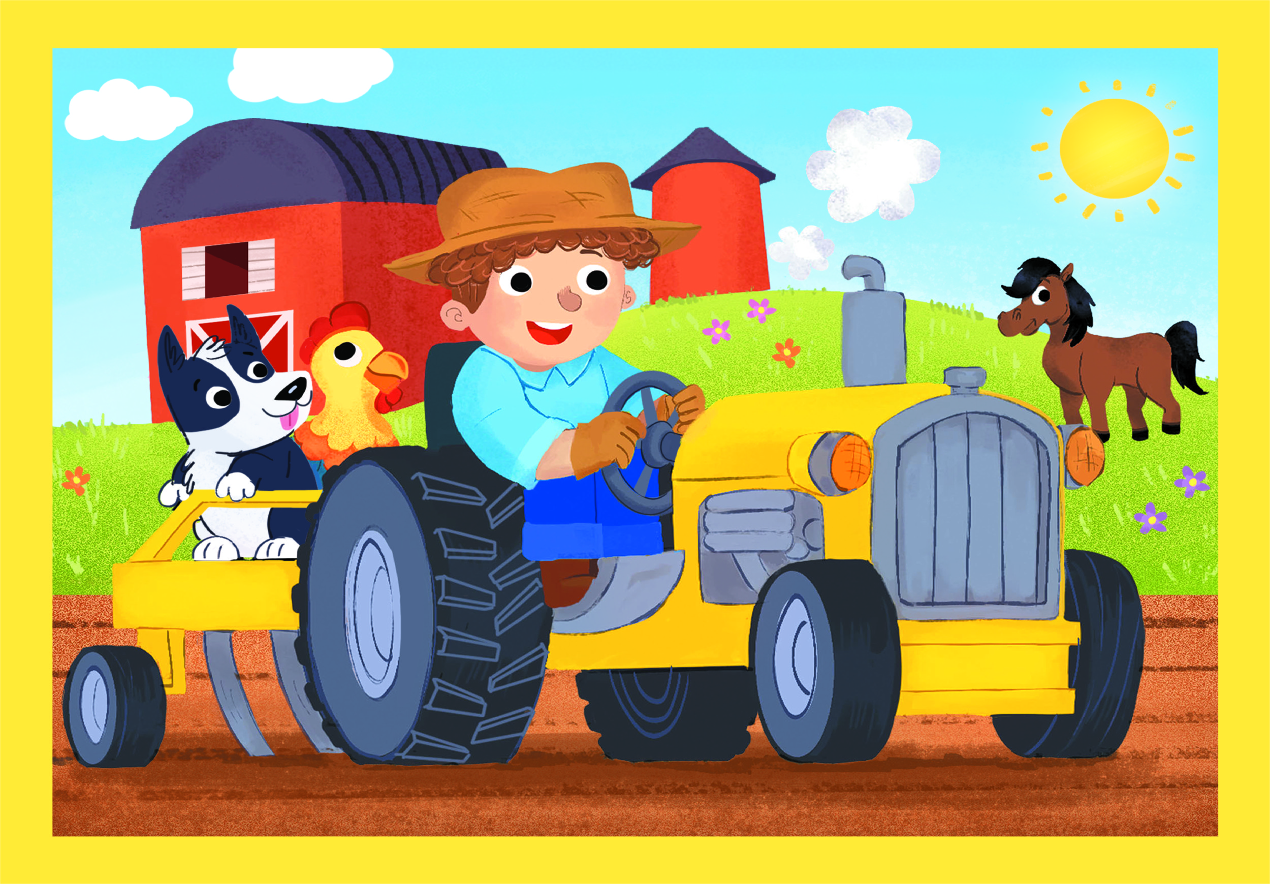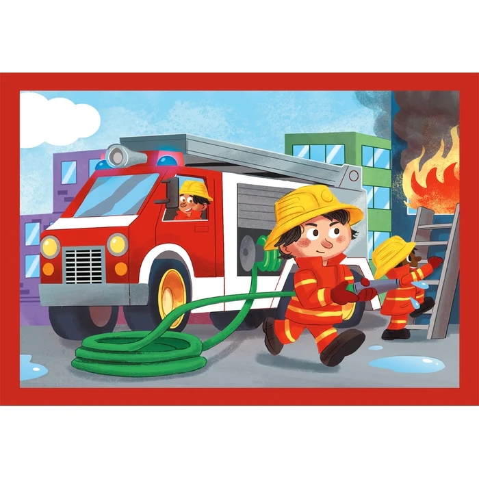 A színes munkagépek témájú kirakó készlet négy különböző nehézségi szintű puzzlet tartalmaz. 12, 16, 20 és 24 darabos (összesen 72 darabos). A játék során a gyermekek fokozatosan, saját tempójukban fejleszthetik logikai és kézügyességüket és közben ismerkedhetnek a különféle munkagépekkel, foglalkozásokka, így például a gazdálkodással, az útépítéssel, építkezéssel és a tűzoltással. Mérete: 19x14 cm
