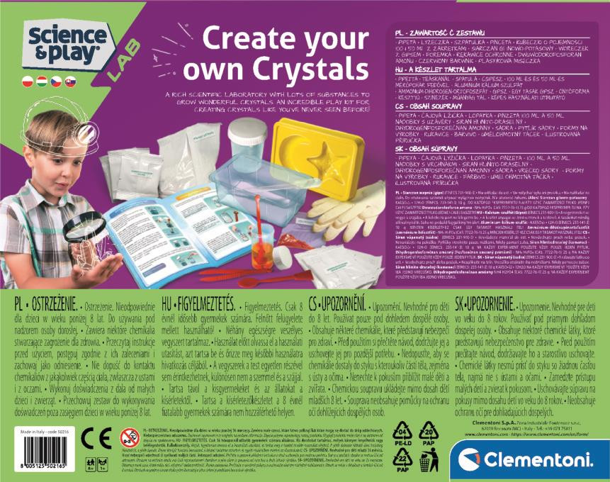 A Clementoni Tudomány és Játék – Kristálykészítő tudományos készlet lenyűgöző élményt nyújt minden fiatal felfedező számára, aki szeretné megérteni a természetes kristályképződés folyamatát.
