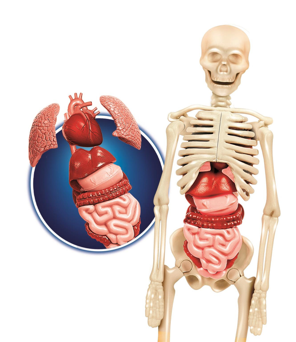 Méret: kb. 40x30cm Tartalom: anatómiai modell, belső szervek, csontváz elemek, illusztrált útmutató Ajánlott korosztály: 8 éves kortól Anyaga: műanyag, nyomtatott oktatási segédanyaggal