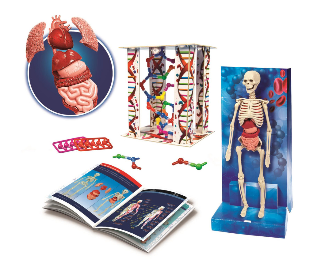 A készlet egy részletesen kidolgozott anatómiai modellt tartalmaz, amelyen keresztül a tanulók felfedezhetik a szervek, izmok és csontok elhelyezkedését és szerepét.