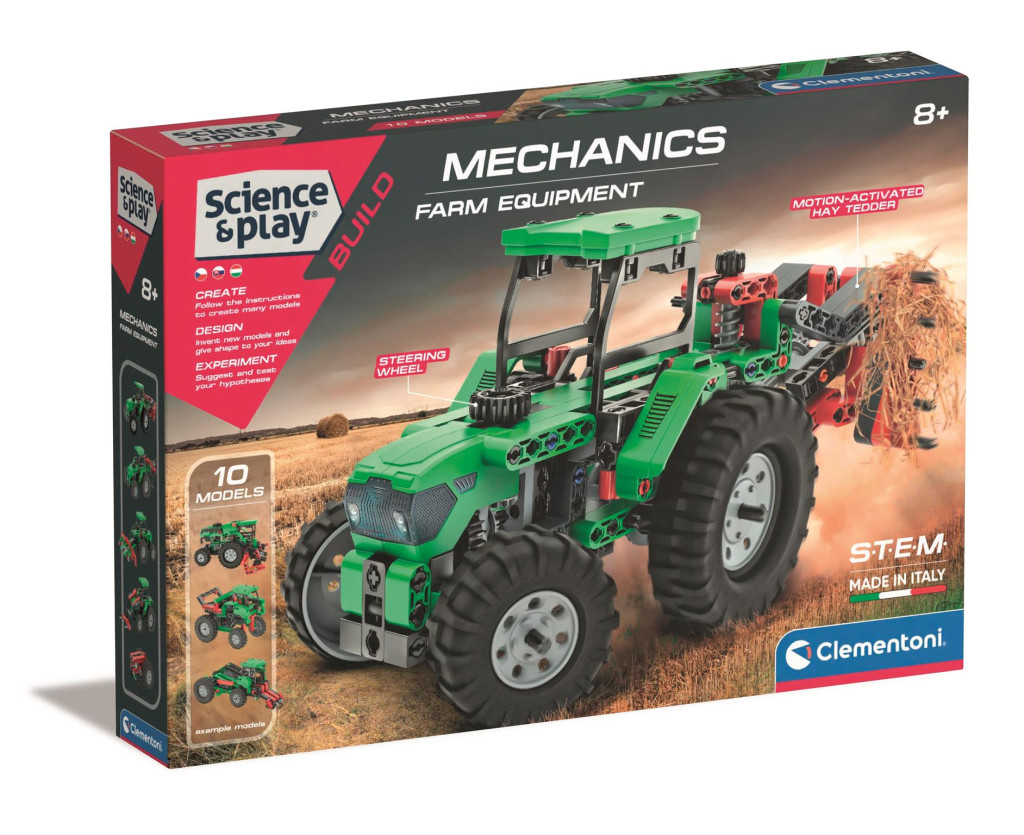 A Clementoni Mechanikai labor – Traktor építőkészlet egy lenyűgöző mérnöki játék, amely játékosan vezeti be a gyerekeket a gépészet és a technológia alapjaiba.