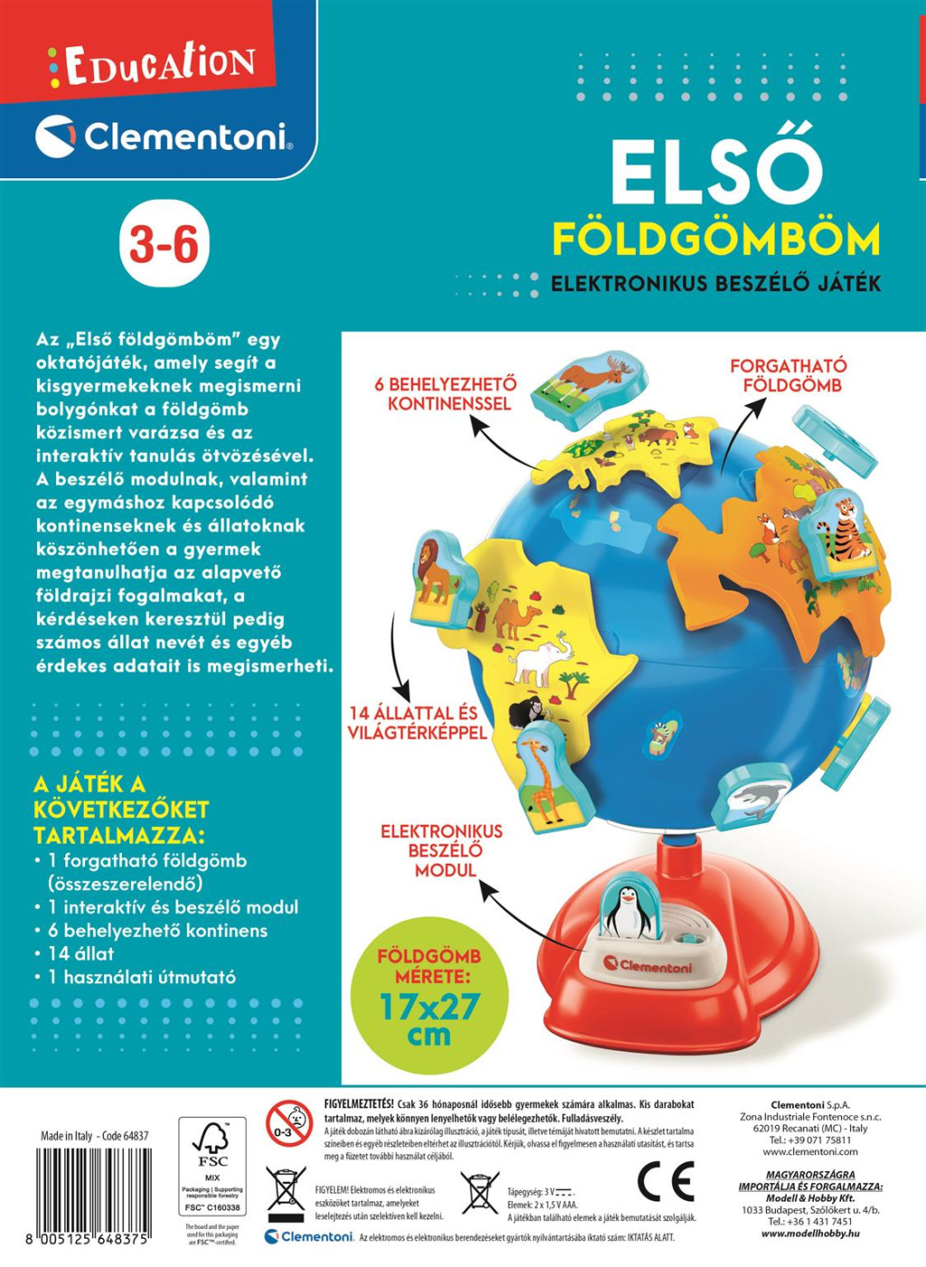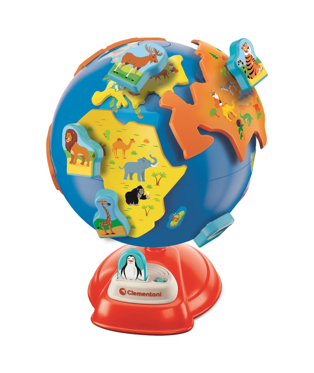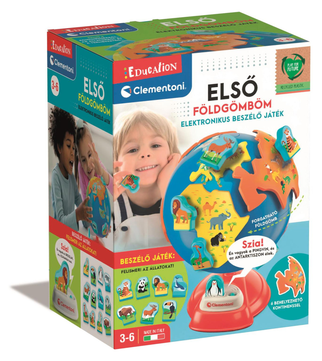 A Clementoni Első Földgömböm egy magyarul beszélő, interaktív játék, amely játékosan ismerteti meg az óvodásokat a világ országaival, állataival és földrészeivel.