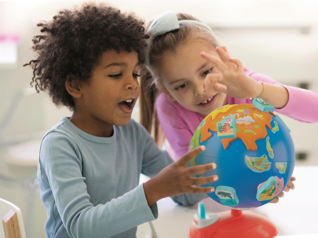 A földgömb érintésre reagál: a gyerekek különböző helyekre bökve hallhatnak érdekes információkat és vidám dallamokat, így a tanulás igazi felfedezéssé válik.
