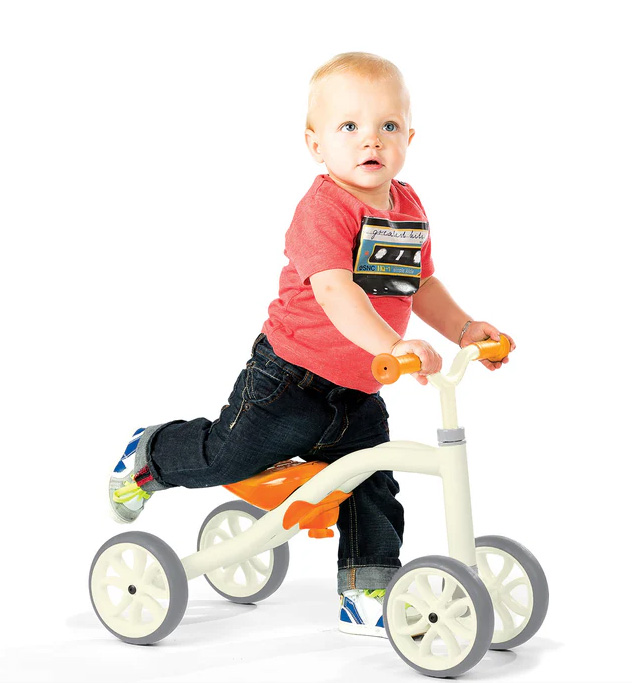 Kerék: csendes és csúszásgátló szintetikus gumival van ellátva. Könnyen változtatható az ülésmagassága, szerszámok nélkül is 22 vagy 25 cm-es ülésmagasságra. Az ülés kialakítása egyedi, rejt egy kis tárolórekeszt ahova a kisgyermek rejtheti a kincseit, illetve fogantyúként is szolgál. 69-111 cm-es gyermek mérethez javasolt. 12 hónapos korú gyermekek használatára CE minősítéssel ellátva!