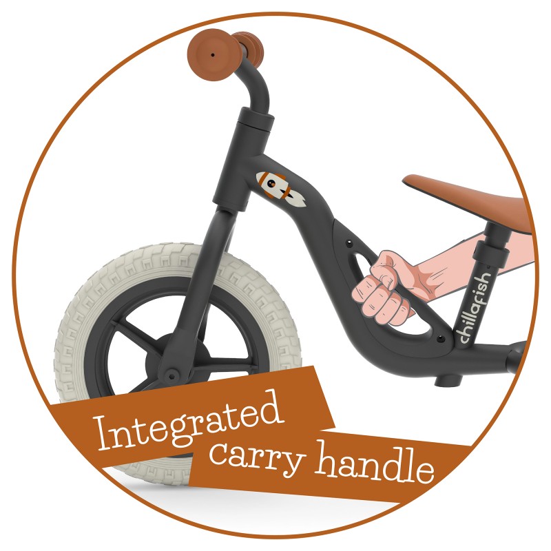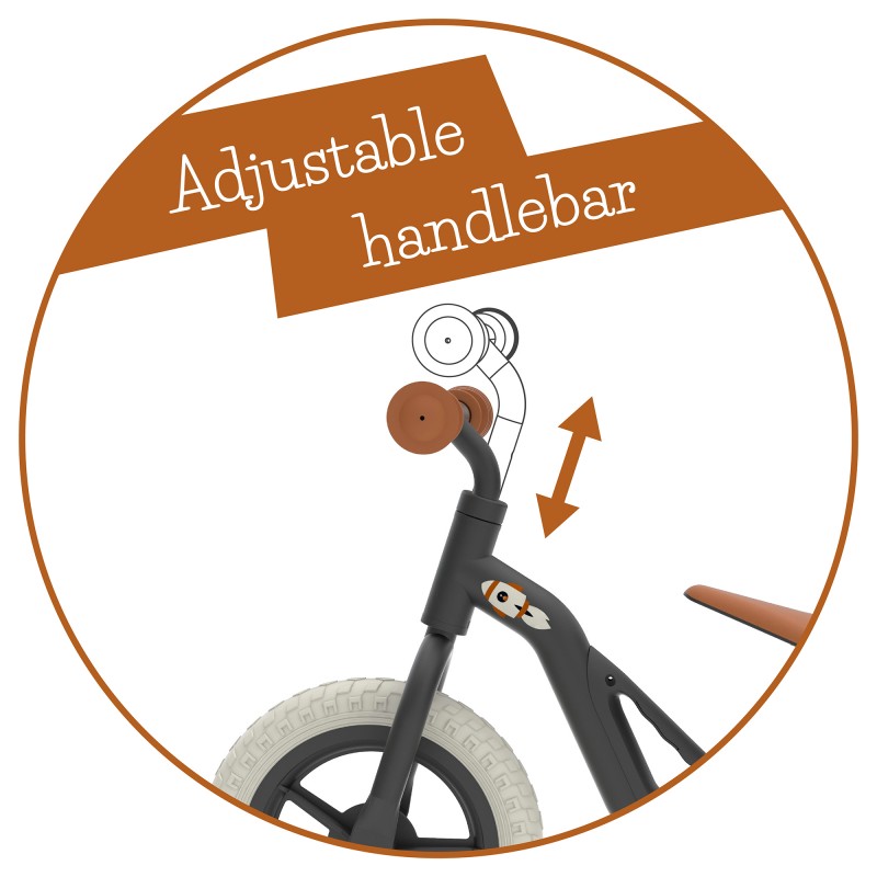 Futóbicikli kicsiknek. Állítható a kormány- és az ülés magassága, hogy kövesse a gyerekek növekedését. A vázba integrált fogantyúval könnyen hordozható. Biztonságos, könnyített fémvázának köszönhetően könnyen irányítható a picik számára. Rugalmas, tömör kerekei EVA anyagból készültek. Az üléssel megegyező színű, csúszásmentes fogantyú van a kormányon. Fejleszti az egyensúlyérzéket, a későbbi, pedállal hajtott kerékpározáshoz.