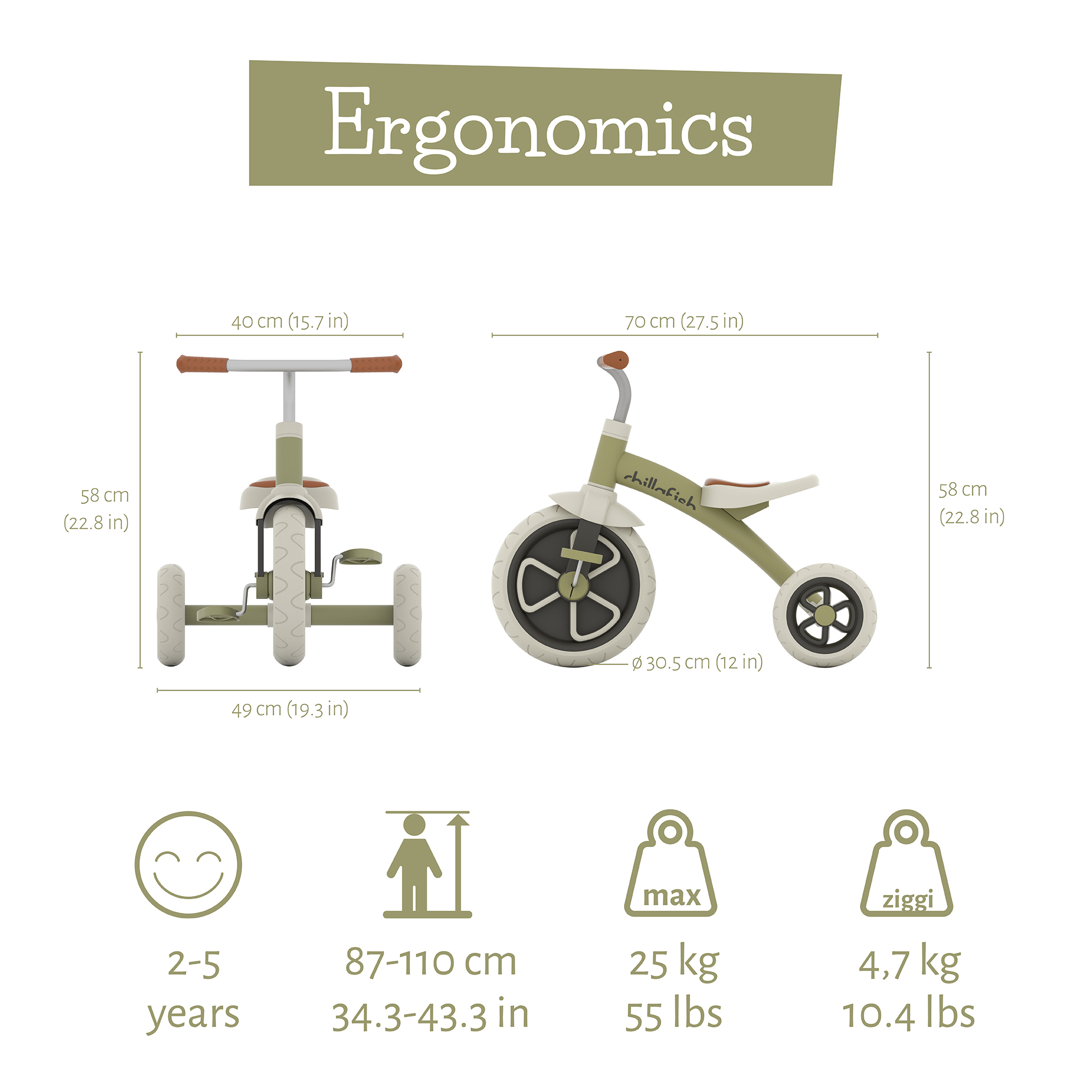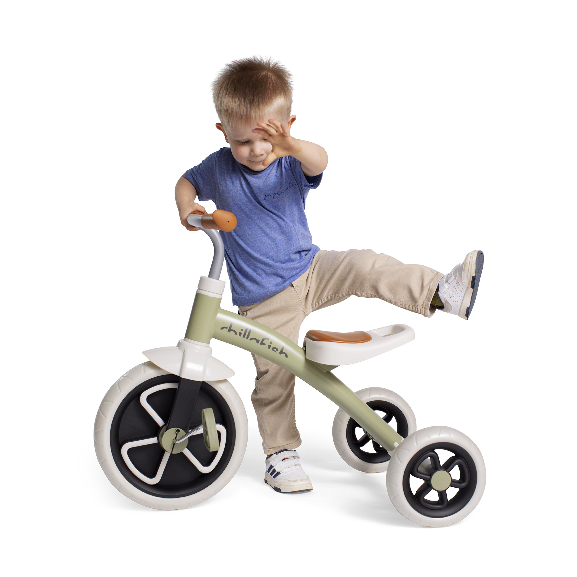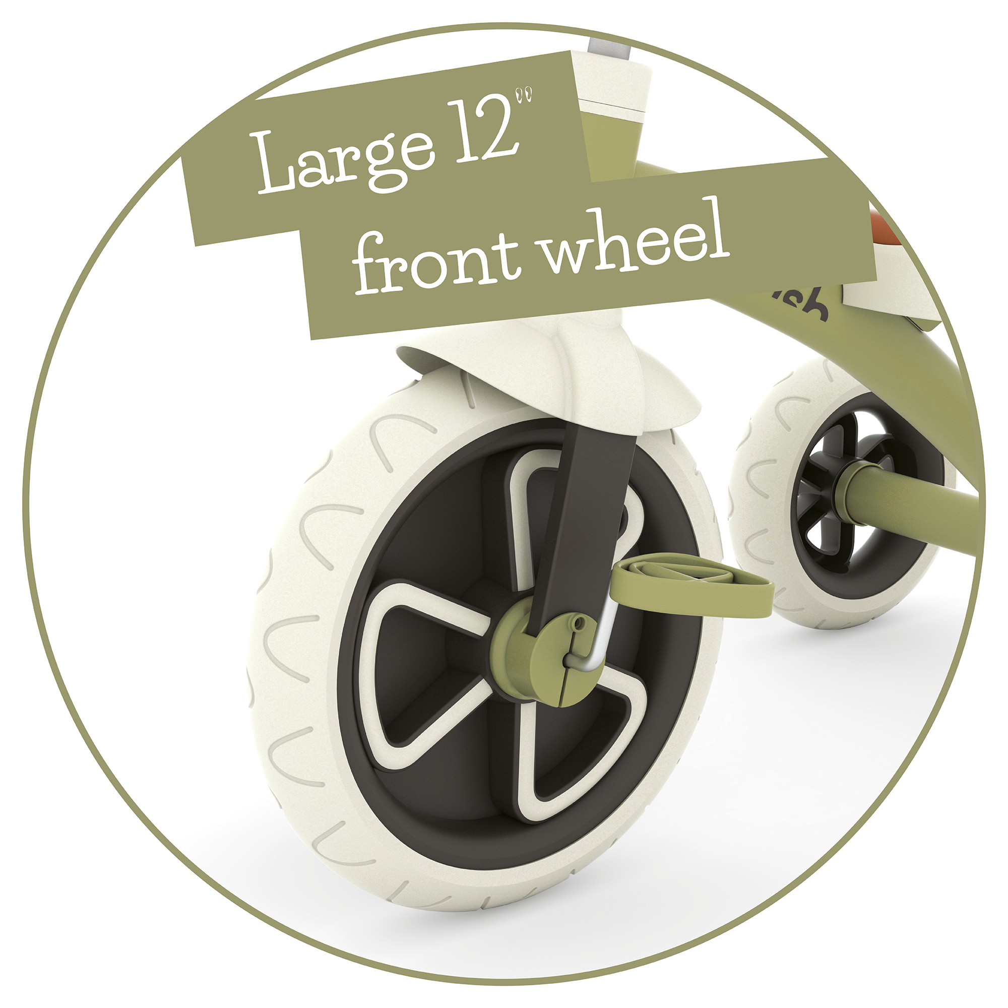 Ez a stabil tricikli nagy, 12 colos első kereke segíti a gyerekeket a lendület megszerzésében, míg a széles hátsó tengely extra stabilitást biztosít. A pedálos meghajtás támogatja a nagymozgások fejlődését, a kényelmes habszivacs ülés pedig beépített hordozófogantyúval rendelkezik. A kerekek halkak, nem hagynak nyomot, és defektmentesek – így beltéren és kültéren is biztonságosan használhatók. Könnyű kialakítása miatt egyszerűen irányítható a lakásban és azon kívül is.