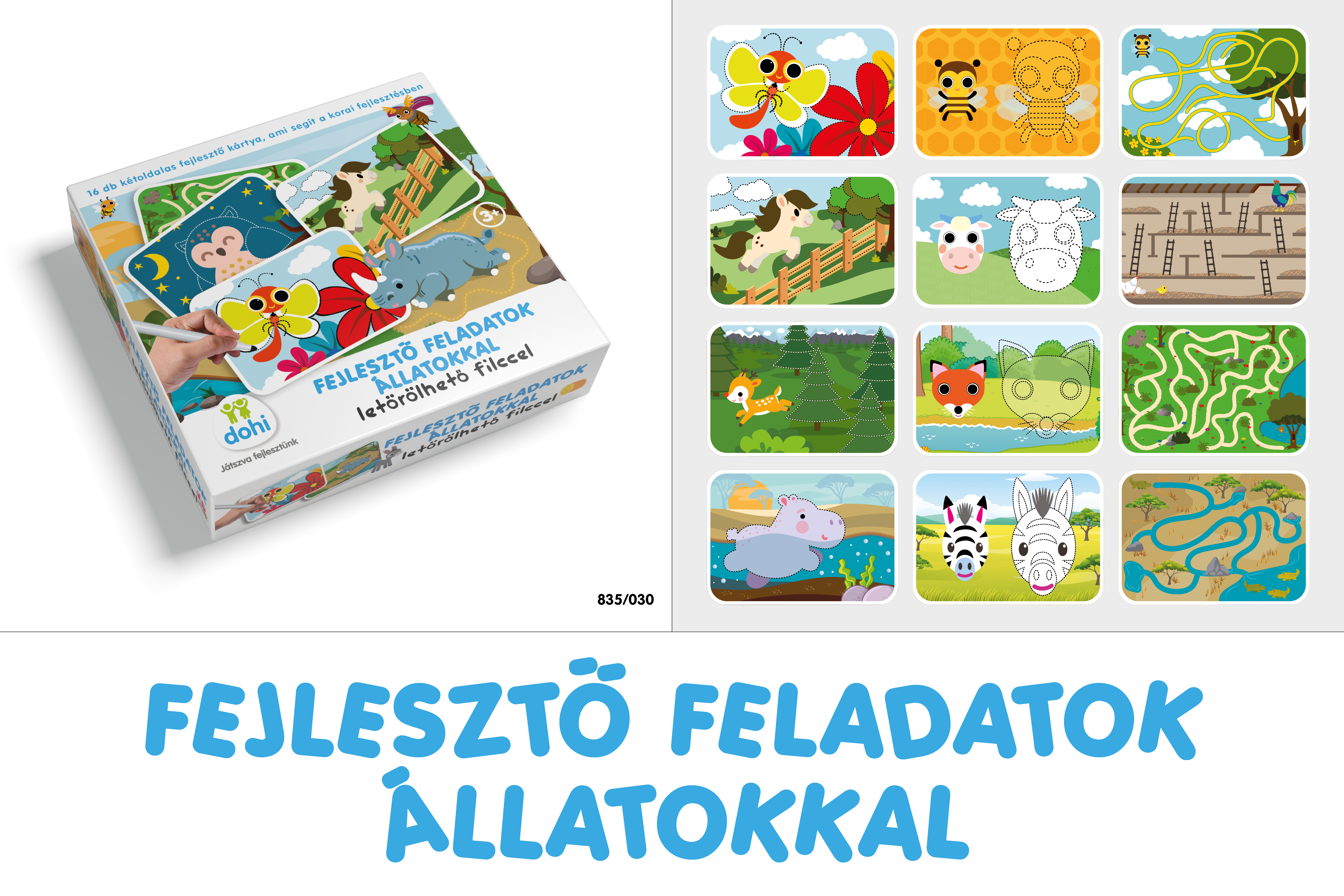 16 db kétoldalas, letörölhető fejlesztő kártya