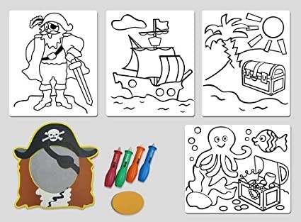 A polifoam színező nem ázik el, lemosható. A gyermekek kézügyessége és kreativitása fejlődik, ezen kívül a csomag tartalmaz egy tükröt is amelynek kalóz mintázatú a kerete, így a gyermek igazi kis kalóznak érezheti magát.