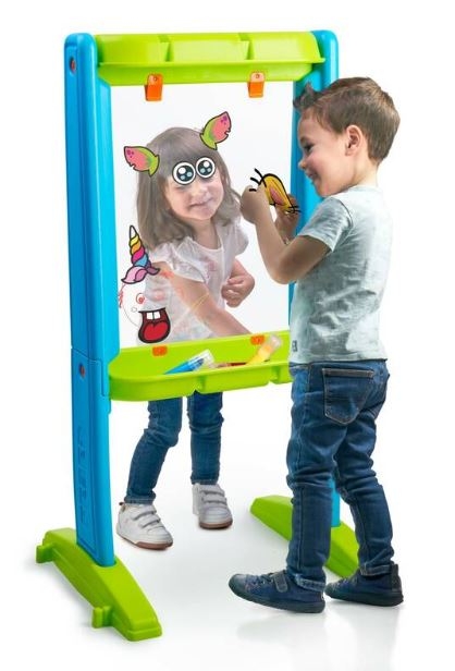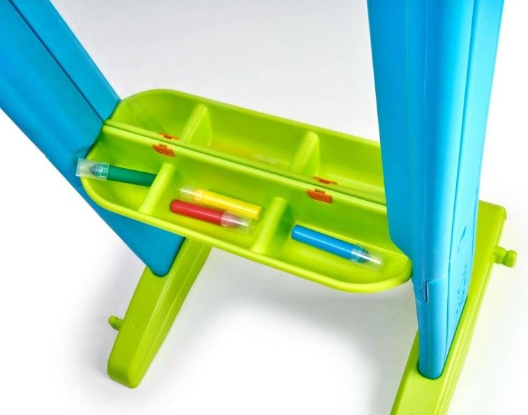 A festőállvánnyal együtt markerek és matricák, valamint rögzítőelemek is járnak, amelyek megkönnyítik a kreatív időtöltést a kicsik számára. Ideális a csoportszoba kiegészítőjeként, mivel kialakítása könnyű, ellenálló és nagyon stabil.