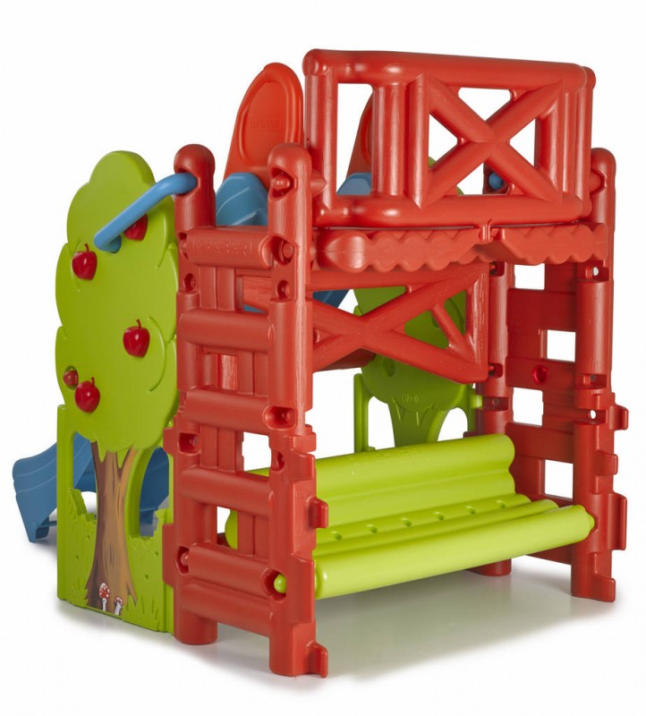 Az almafát szimbolizáló játszócentrum egy csúszdát, két különböző mászókalétrát és egy kis piknikasztalt paddal is tartalmaz.