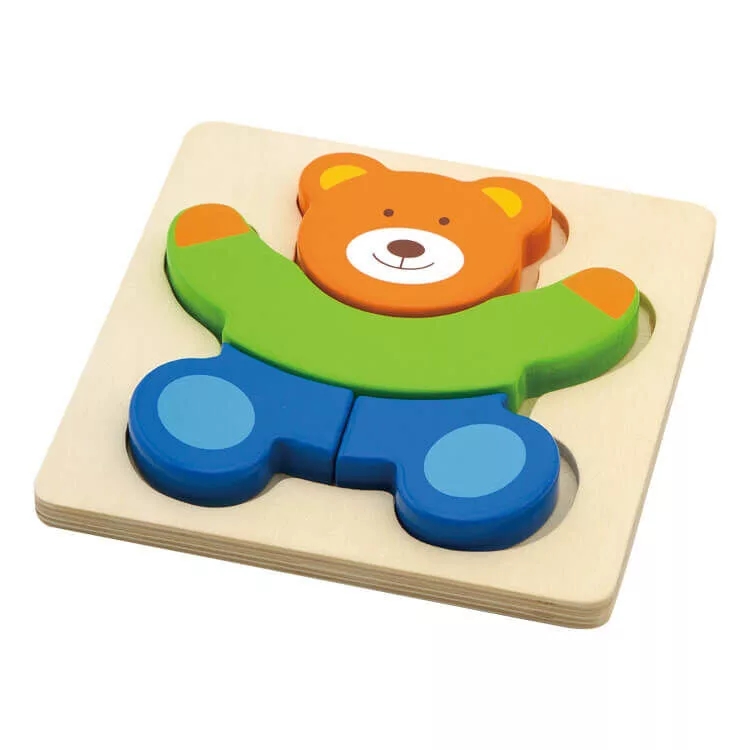 Magasított kialakítású, fából készült, macis puzzle. Termék mérete: 14,5x14,5x1,8 cm 24 hónapos korú gyermekek használatára CE minősítéssel ellátva!