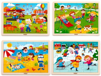 A 4 darabos puzzle szett tartalma: - Puzzle 4 évszak-tavasz - Puzzle 4 évszak-nyár - Puzzle 4 évszak-ősz - Puzzle 4 évszak-tél Minden darab 24 db-os fa puzzle tavasz, nyár, ősz és tél témában. Termék mérete: 30x1x22,5cm 24 hónapos korú gyermekek használatára CE minősítéssel ellátva!