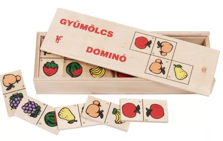 Kezdetben érdemes átbeszélni a gyermekkel a képeken látható gyümölcsöket, mely így segíti a szókincs gyarapodását, s ha már magabiztosan felismeri, megnevezi őket, utána érdemes elkezdeni dominózni vele.