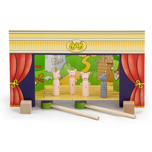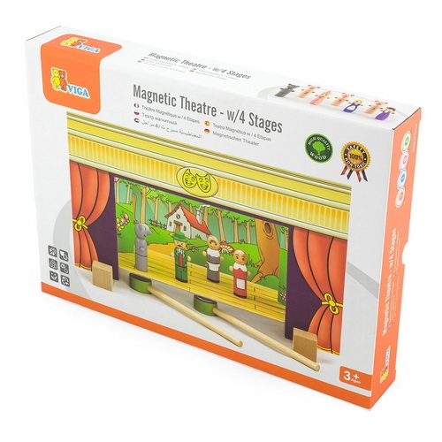 A mágneses bábszínház kisméretű mágneses figurákkal és egy ehhez tartozó színpaddal színesíti a mesés- és a vizuális tevékenységeket. A különböző figurákat két mágnesezett fapálca segítségével mozgathatjuk. A bábok között megtaláljuk 4 ismert és szeretett mese szereplőit: - Piroska és a farkas - A három kismalac - Hamupipőke - Pinokkió A bábszínház 15 db mesefigurát és 4 db háttér elemet tartalmaz. Mérete: 32x17x22 cm