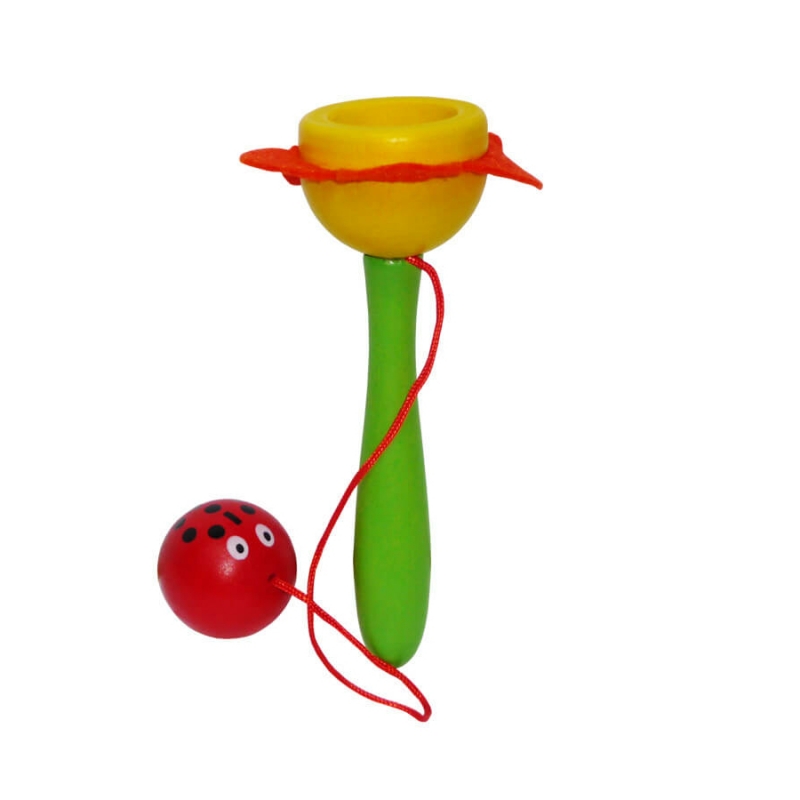 A kis katicás golyós játék igazi koncentráció és ügyességfejlesztő játék. A játék egy zöld színű nyélből egy sárga és piros virágot formáló tálka szerű felsőrészből és egy zsinóron lógó katicás golyóból áll. A cél, hogy a katica belebújjon a virágba, mindezt úgy hogy csak a nyelet foghatjuk. Mérete: 4x4x15 cm