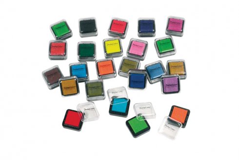 A készlet tartalma: 24 db 3x3 cm-es különböző színű tintapárna