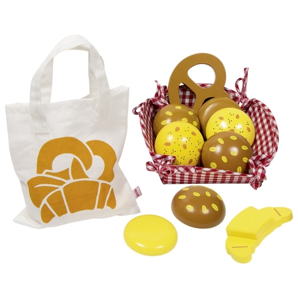 Tartalma: 11 db elem. A Goki bevásárló szettje pékség tematikával kiváló kiegészítője lehet a piacos és egyéb szerepjátékoknak. A szettben egy bevásárlószatyor, kendővel fedett kosár és fából készült péksütemények találhatóak. Magos és sima zsömlék, illetve kifli és perec is a készlet részét képzik. A termék magasminőségű fa és textil anyagból készült, így mutatós és tartós kiegészítője lehet a gyerek- és csoportszobáknak. Kosár mérete: 14x14x5 cm, textil