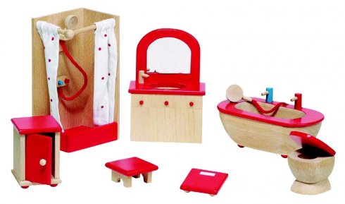 Kád, zuhanyzó, mosdó, mosdószekrény, kis szekrény, mérleg, sámli.
