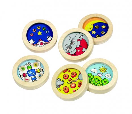A játék célja a táblán lévő lyukakba belejuttatni a golyókat a játéktábla mozgatásával. Fejleszti a finommotorikus mozgást, a szem-kéz koordinációt, a kitartást és a türelmet.