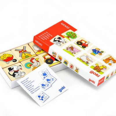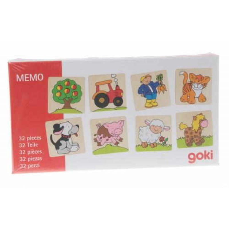 A Gokitól megszokott magas minőségben gyártott, fából készült memória játékban bájos, farmon élő állatok képeit kell összepárosítani.