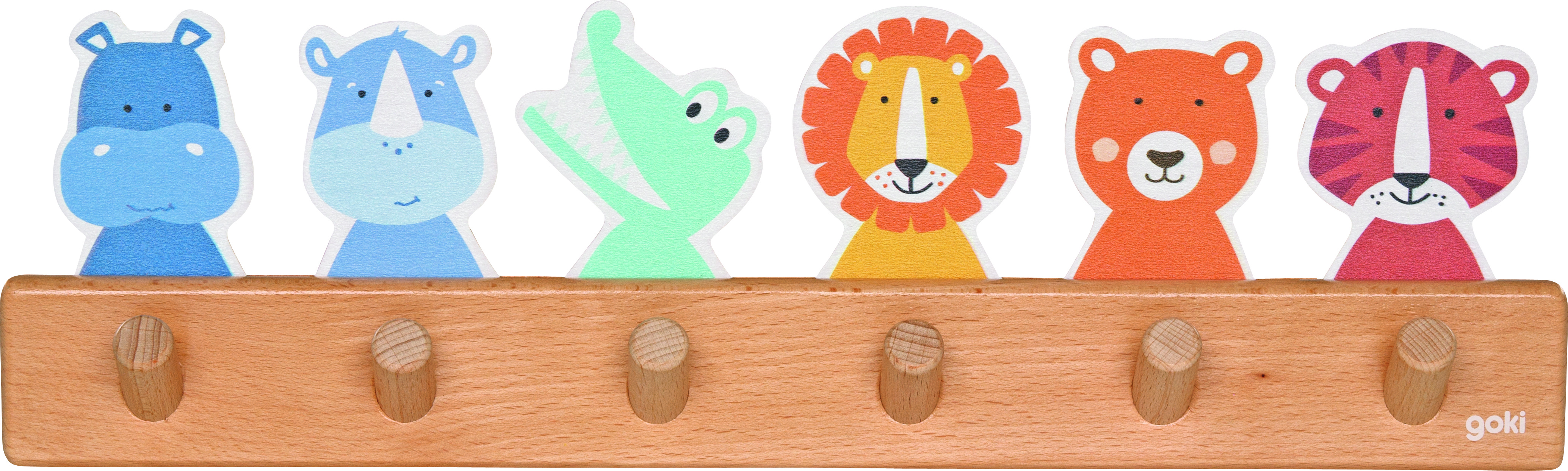 Ez a vidám, állatfigurákkal díszített falifogas praktikus és dekoratív kiegészítő gyerekszobákba, óvodákba és bölcsődékbe. A természetes fa alapra rögzített színes állatfigurák barátságos hangulatot teremtenek, miközben játékos formában ösztönzik a gyermekeket a rendrakásra. A több akasztó lehetővé teszi kabátok, táskák vagy kisebb ruhadarabok kényelmes elhelyezését. A kedves állatkarakterek – víziló, orrszarvú, krokodil, oroszlán, medve és tigris – különösen vonzóvá teszik a fogast a kisgyermekek számára. Intézményi környezetben is ideális választás, hiszen segíti az önállóság kialakulását és a mindennapi rendszerezést.