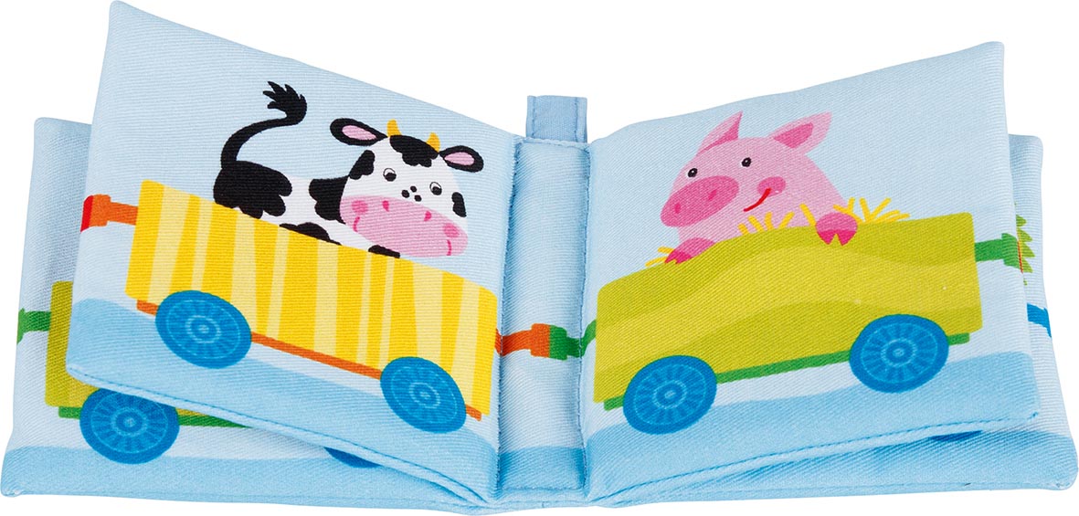 Tartalma: 1 db textil babakönyv A pici könyv összesen 4 lapból áll, mely egy vonatot és rajta utazó állatkákat mutat, kellemes kék háttérrel. A puha babakönyv már újszülött kortól használható! 0 hónapos korú gyermekek számára CE minősítéssel ellátva!