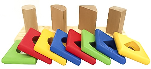 Látszólag egyszerű a feladat,, az alapra helyezni a megfelelő formájú kis fa négyzetet. De olyan egyformának tűnnek! Nézd meg jól és tedd a helyére. Játszhatsz a színekkel is. Ne legyen azonos szín egy sorban.