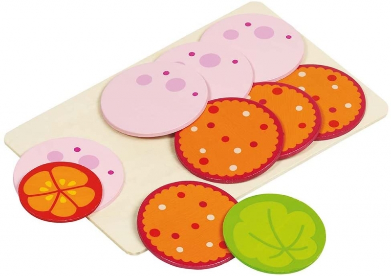11 db-os készlet tartalma: 8 szelet szalámi, 1 db paradicsomkarika, 1 db salátalevél, 1 db vágódeszka. Átmérő: 6 cm