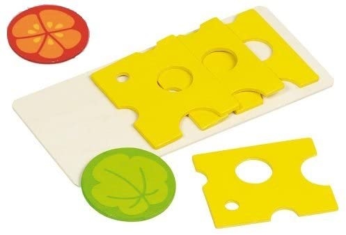 7 db-os készlet tartalma: 4 szelet sajt, 1 paradicsomkarika, 1 salátalevél, vágódeszka. 7x6 cm