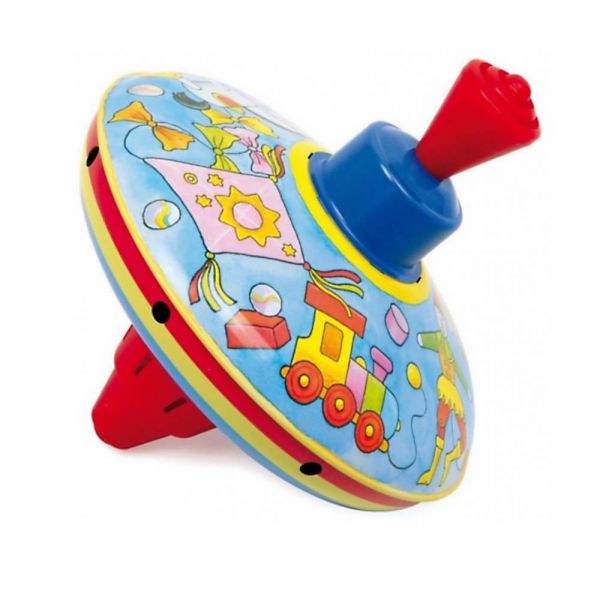 A búgócsiga 13x15 cm méretű, klasszikus kialakítású, masszív fémből készült játék.