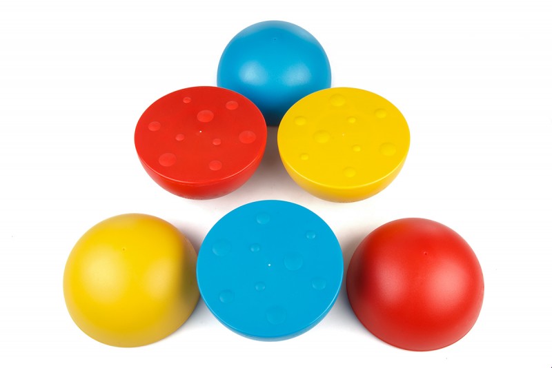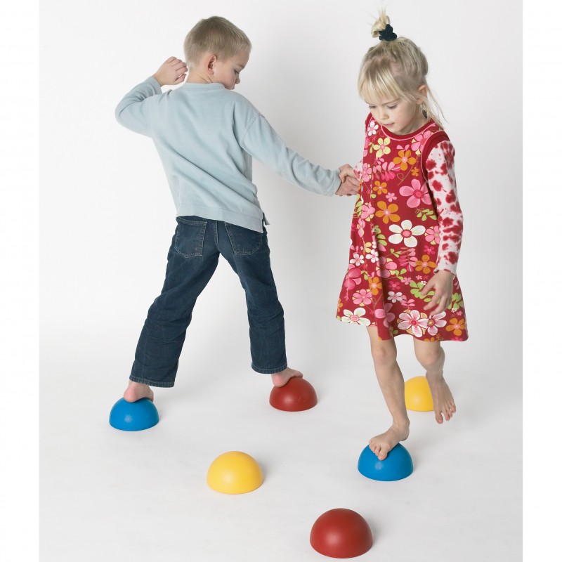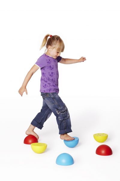 A félgömb alakú kavicslépegetők igazi kihívást jelentenek bárki számára. A fejlesztő játékszettben 6 db, félgömb alakú elem található, melyek mind csúszásmentes felülettel vannak kialakítva. A bevonaton túl a stabilitást segíti, hogy minden elem homokkal van töltve, de bírják a nedves környezetet is, így kültéren is használható. A gömböket két módon is használhatjuk, így a kialakított pálya nehézsége a gyermekek életkorához alakítható. A termék lapos oldalán kis kitüremkedések segítik a tapadást és a talp érzékelésének fejlesztéséhez is hozzájárulnak. Átmérőjük: 15 cm Magasságuk: 7 cm Terhelhetőségük: 100 kg Tartalma: 6 db elem Ájánlott korosztály: 3 – 99 év