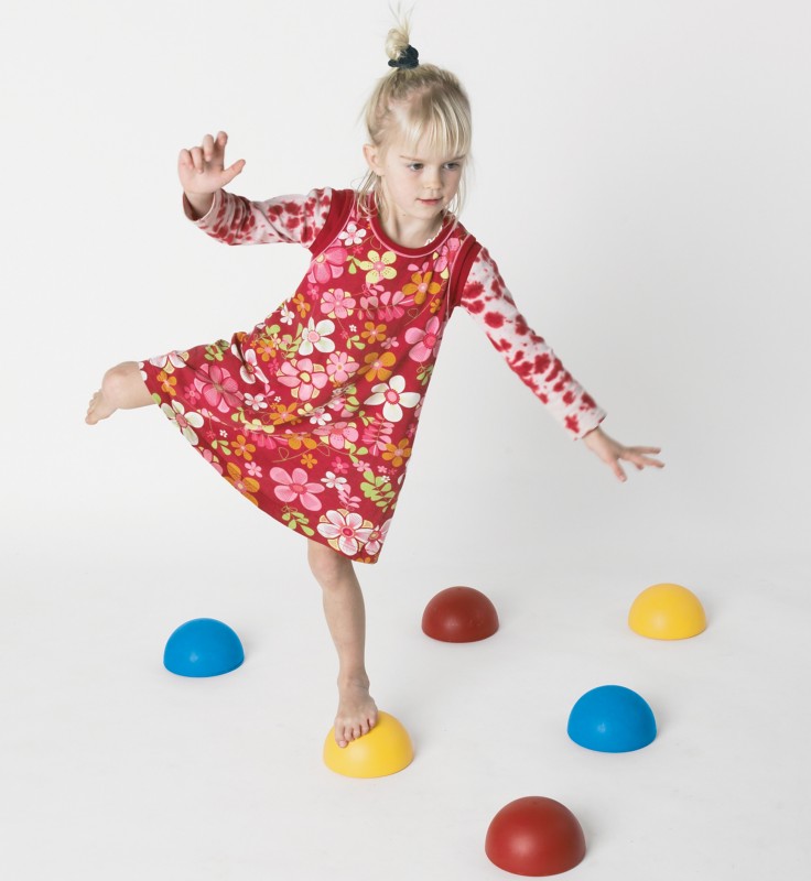 A megváltozott magassági és távolsági viszonyok miatt a gyermeknek a láb emelése és nyújtása folyamán is meg kell tartania az egyensúlyát. A bonyolultabb mozgássor végrehajtása a koncentráló és az egyensúlyozó képességét is nagymértékben fejleszti. A termék csúszásgátlóval van ellátva, így használata biztonságos.