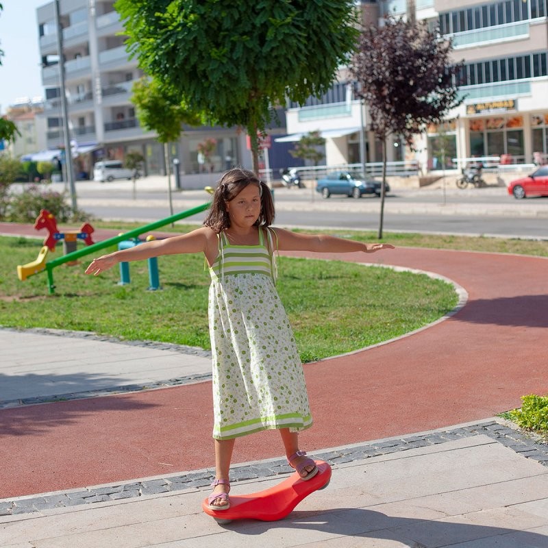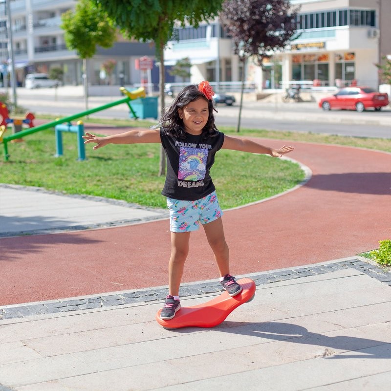 A Gonge billenő, egyensúlyozó deszkája már egészen kis kortól kezdve alkalmazható az egyensúlyérzék fejlesztéséhez. A kis libikóka kemény, strapabíró műanyagból készült, csúszásmentes felülettel. Alsó részén TPE gumiból készült ütéscsillapítók kaptak helyet, amelyek az ütődések erejének csökkentésén túl megvédik a padlót a karcolódástól és hangtalanná is teszik a libikókát. Mérete: 54x22x14 cm Maximális terhelhetőség: 75 kg 24 hónapos kortól CE minősítéssel ellátott! Tartalma: 1 db billenő deszka Ájánlott korosztály: 2 – 99 év