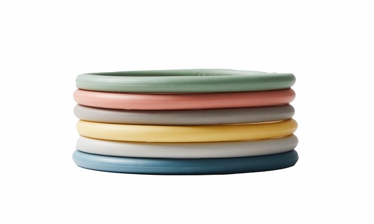 A Gonge rugalmas karikái több féle, pasztell színben találhatóak meg a készletben.