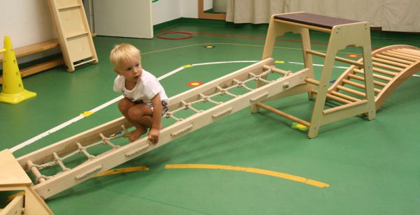 A RillaGym többfunkciós mászókészletével remek akadálypályát építhetünk, amelyen változatos mozgásformákkal kelhetnek át a gyerekek. Fejlődik a mozgáskoordinációjuk, egyensúlyuk, térbeli tájékozódásuk.