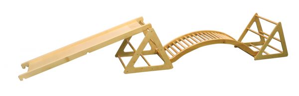 A RillaGym tömör bükkfából készült, strapabíró, többfunkciós mozgásfejlesztő készlet, amely különböző koordinációs képességek fejlesztésére alkalmas. Terhelhetőség: 60 kg Tartalma: - 2 db 60x74x60 cm-es háromszög - 1 db 170x45x36 cm-es híd - 1 db 190x40x8 cm-es csúszda