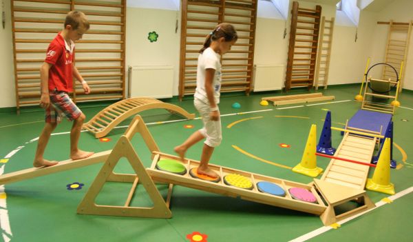 A RillaGym tömör bükkfából készült, strapabíró, többfunkciós mozgásfejlesztő készlet, amely különböző koordinációs képességek fejlesztésére alkalmas. Terhelhetőség: 60 kg Tartalma: - 1 db 60x74x66 cm-es háromszög - 1 db 68x68x15 cm-es sziget - 1 db 47x35x31 cm-es billentő - 1 db 140x10x6 cm-es gerenda - 1 db 153x40x5 cm-es érzékelő ösvény - 1 db 190x40x8 cm-es sétáló A KÉSZLET A BÓJÁKAT, A RUDAKAT ÉS AZ ÉRZÉKELŐKORONGOKAT NEM TARTALMAZZA!