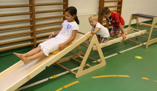 A RillaGym tömör bükkfából készült, strapabíró, többfunkciós mozgásfejlesztő készlet, amely különböző koordinációs képességek fejlesztésére alkalmas. Terhelhetőség: 60 kg Tartalma: - 1 db 47x35x31 cm-es billentő - 1 db 190x40x8 cm-es mászóháló - 1 db 60x74x66 cm-es háromszög