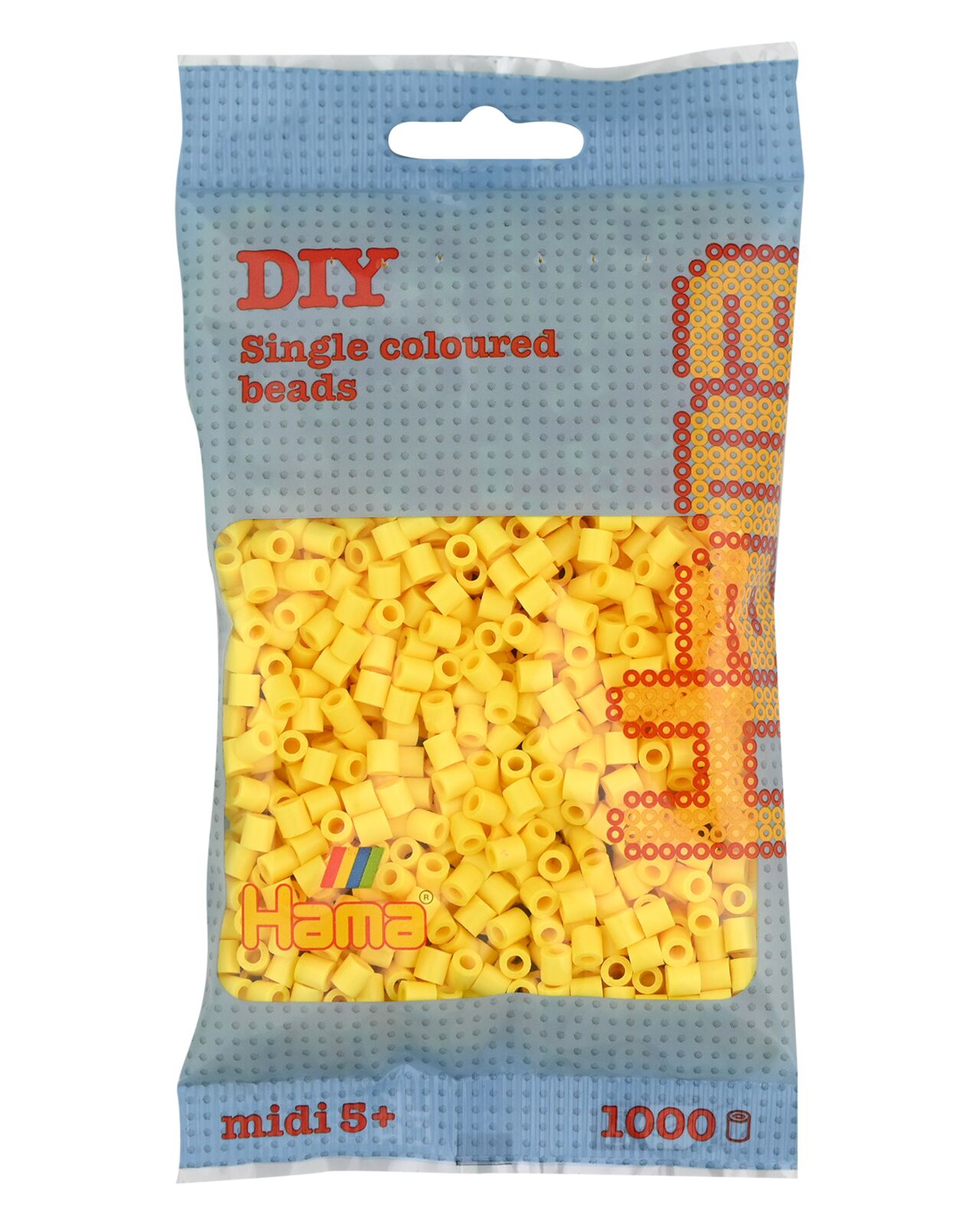 1000 darabos világos sárga színű vasalható gyöngy. Más színekkel kombinálva alkothatunk vele kedves állat- vagy emberfigurákat, poháralátéteket, vagy akár ajándéktárgyakat. Segítségképpen használhatunk Hama ötletfüzetet is, de hagyatkozhatunk akár a fantáziánkra is.